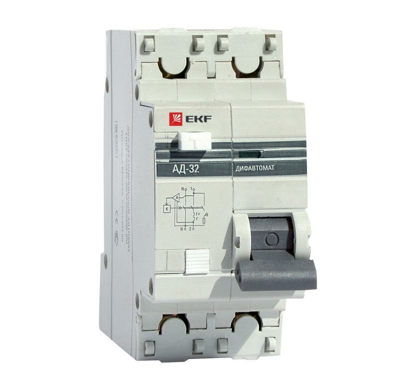 Выключатель автоматический дифференциального тока 1п+N C 25А 10мА тип AC 4.5кА АД-32 PROxima, EKF DA32-25-10-PRO (1 шт.)