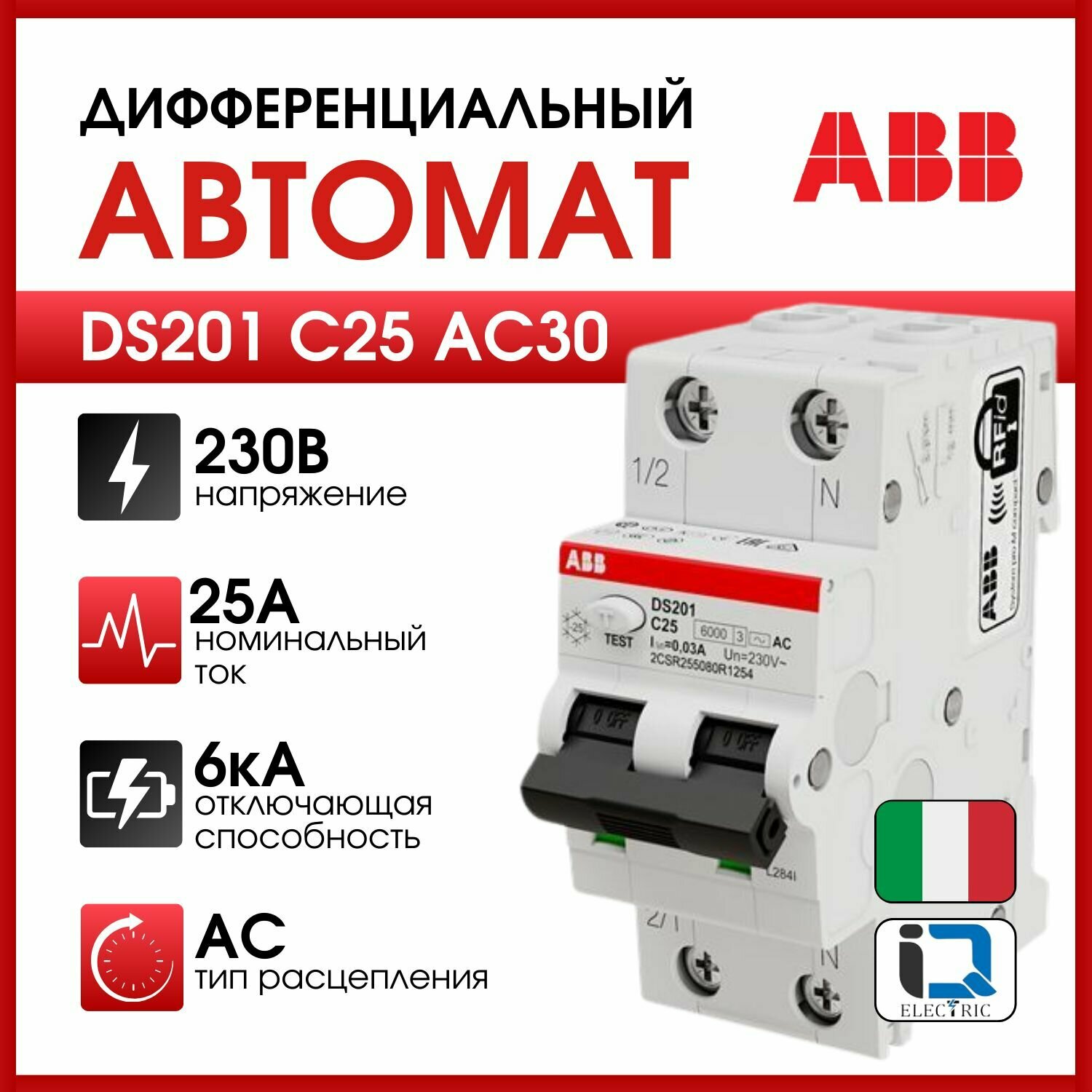 Дифференциальный автомат Abb 25А 30мА DS201 C25 AC30 2CSR255080R1254 интересное: