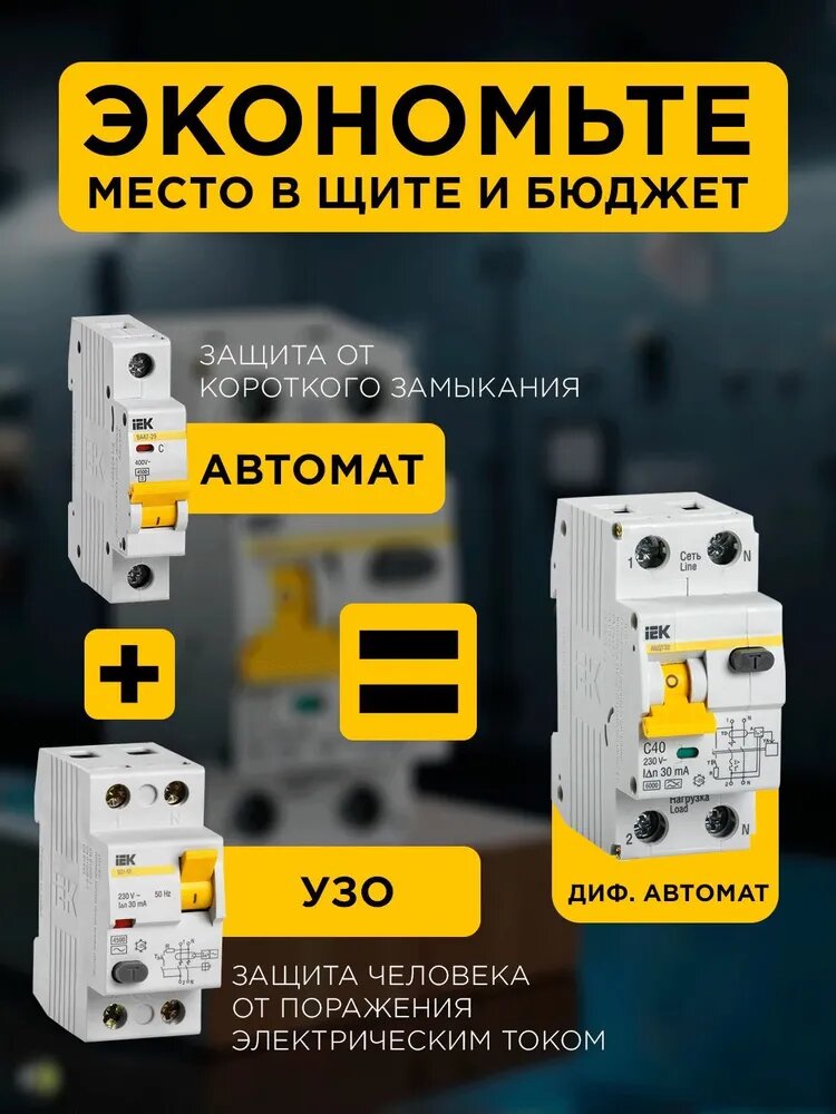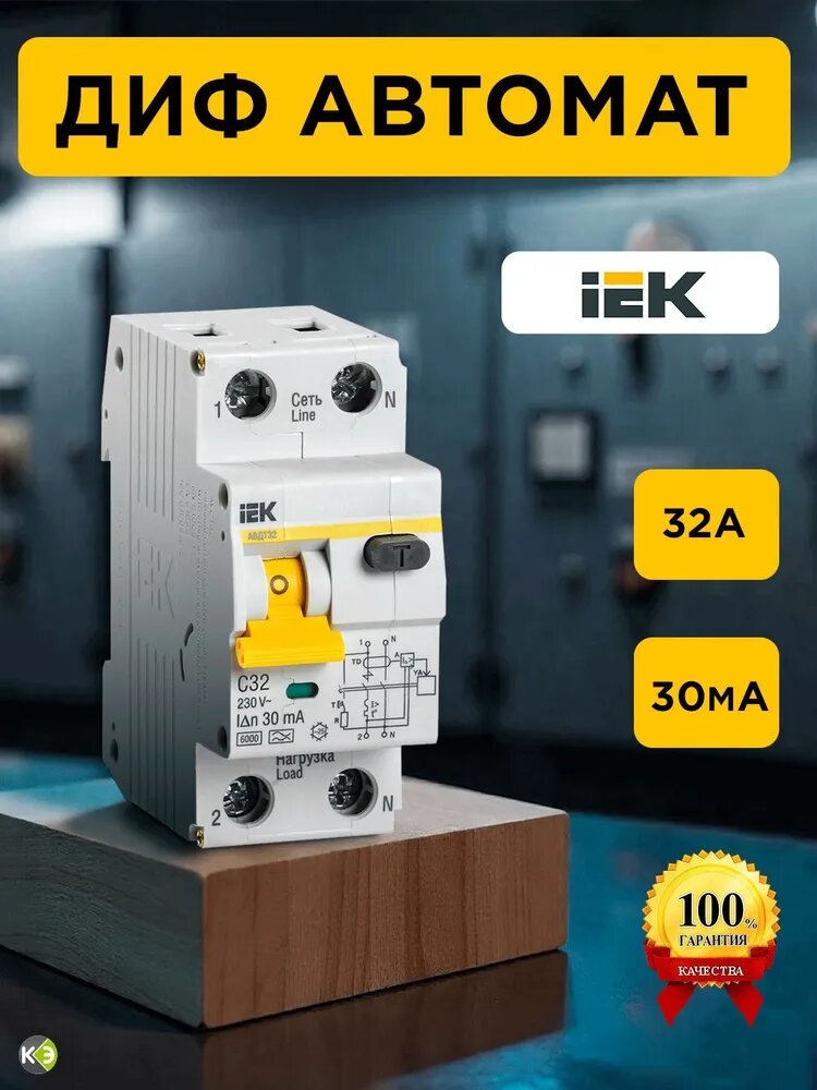 СохранитьДифференциальный автомат ДИФ АВДТ-32 тип А/С 6кА 30мА 1П+Н 32А IEK интересное: