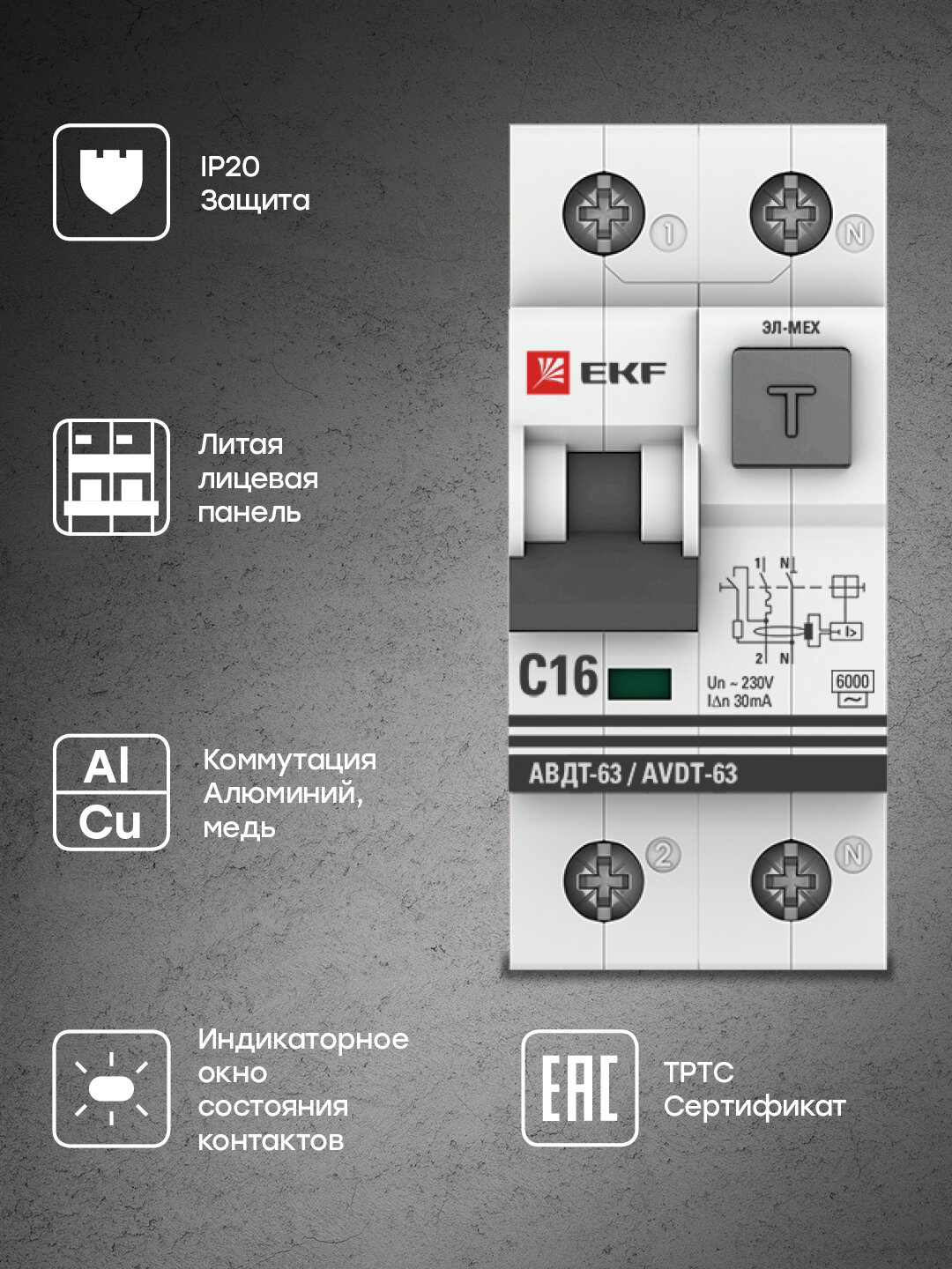 Электромеханический дифференциальный автомат EKF PROxima АВДТ-63
