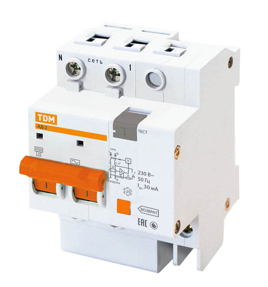 Диф. автомат АД-2 2Р 25А 30мА TDM