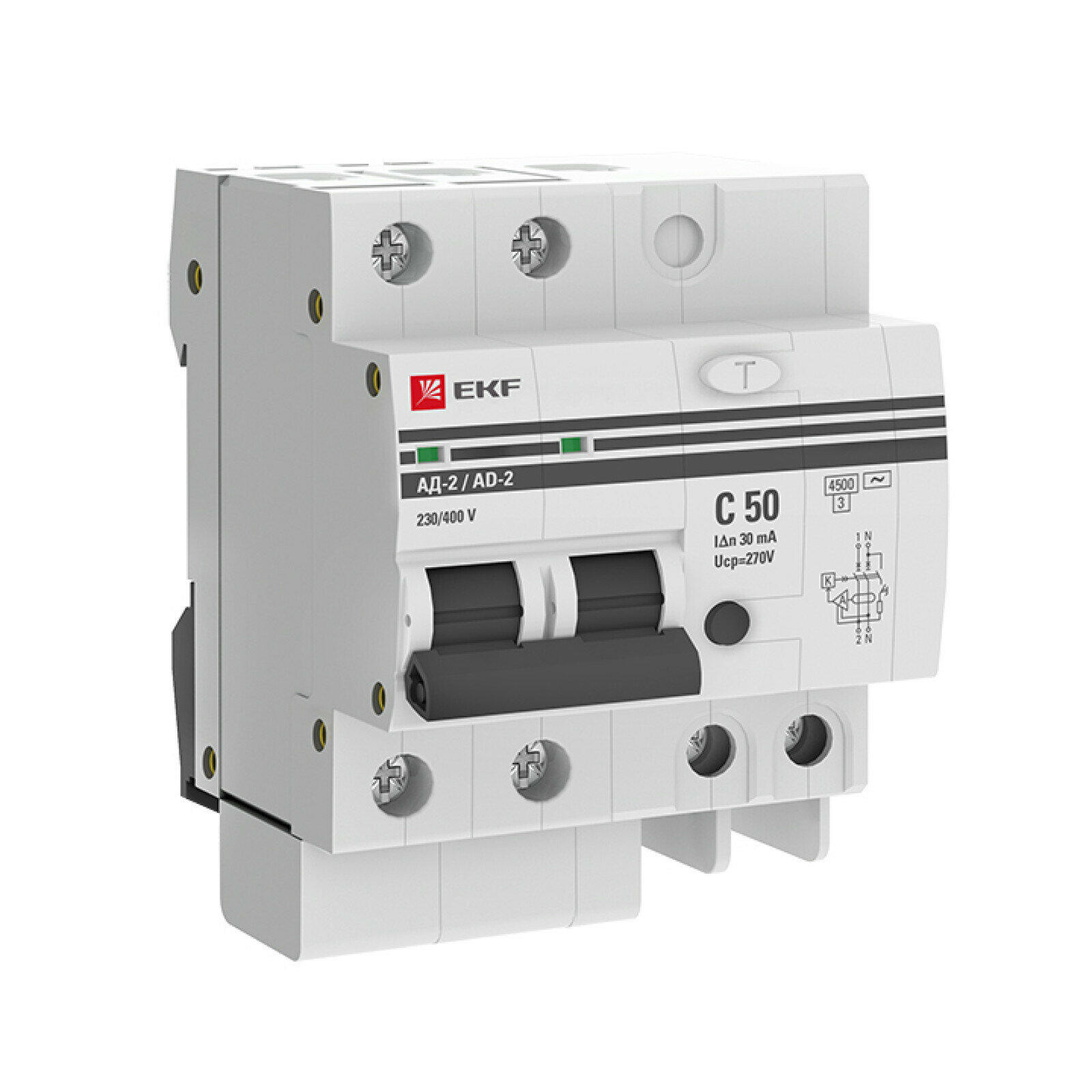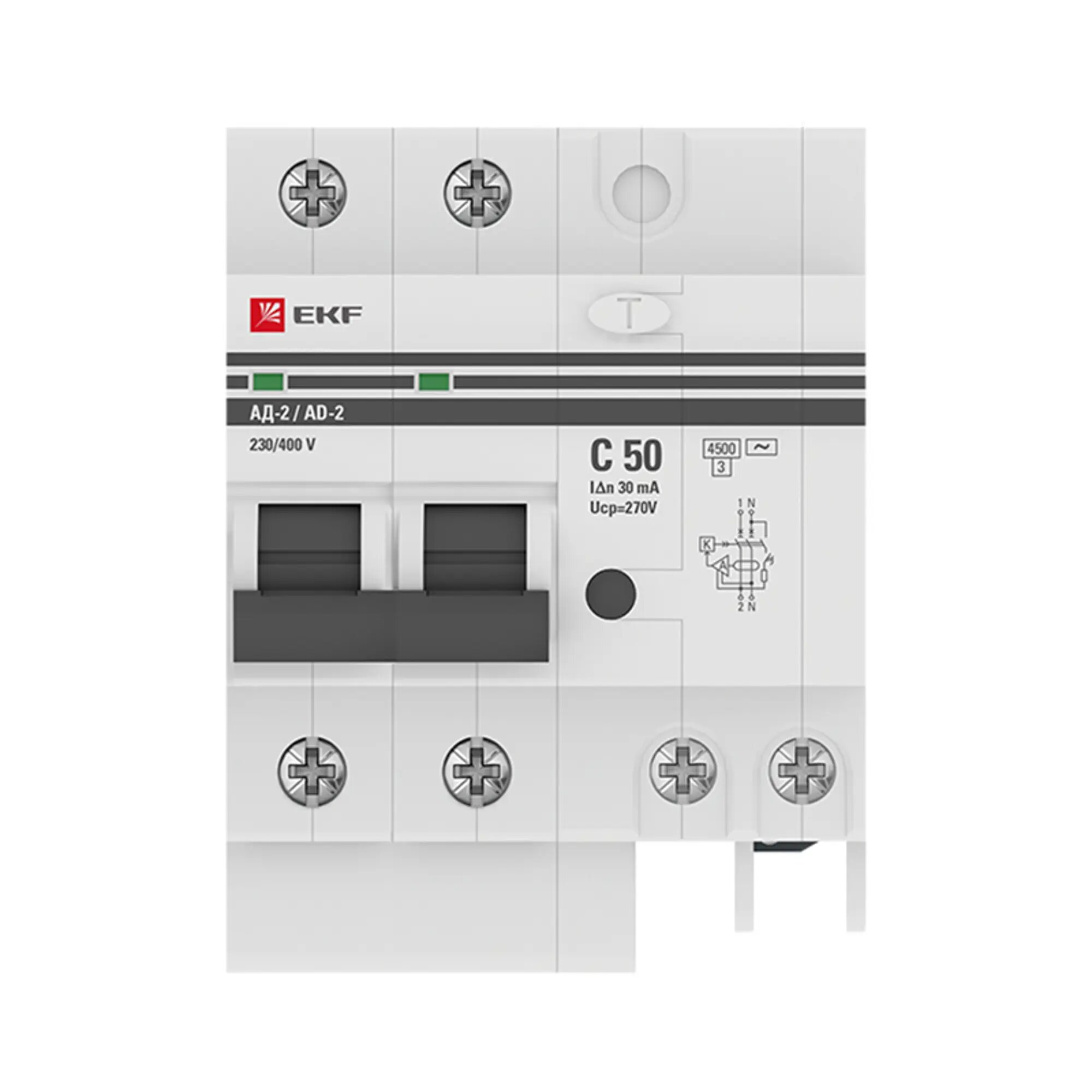 Дифференциальный автомат АД-2 50А-30мА (хар. C, AC, электронный, защита 270В) 4,5кА EKF PROxima