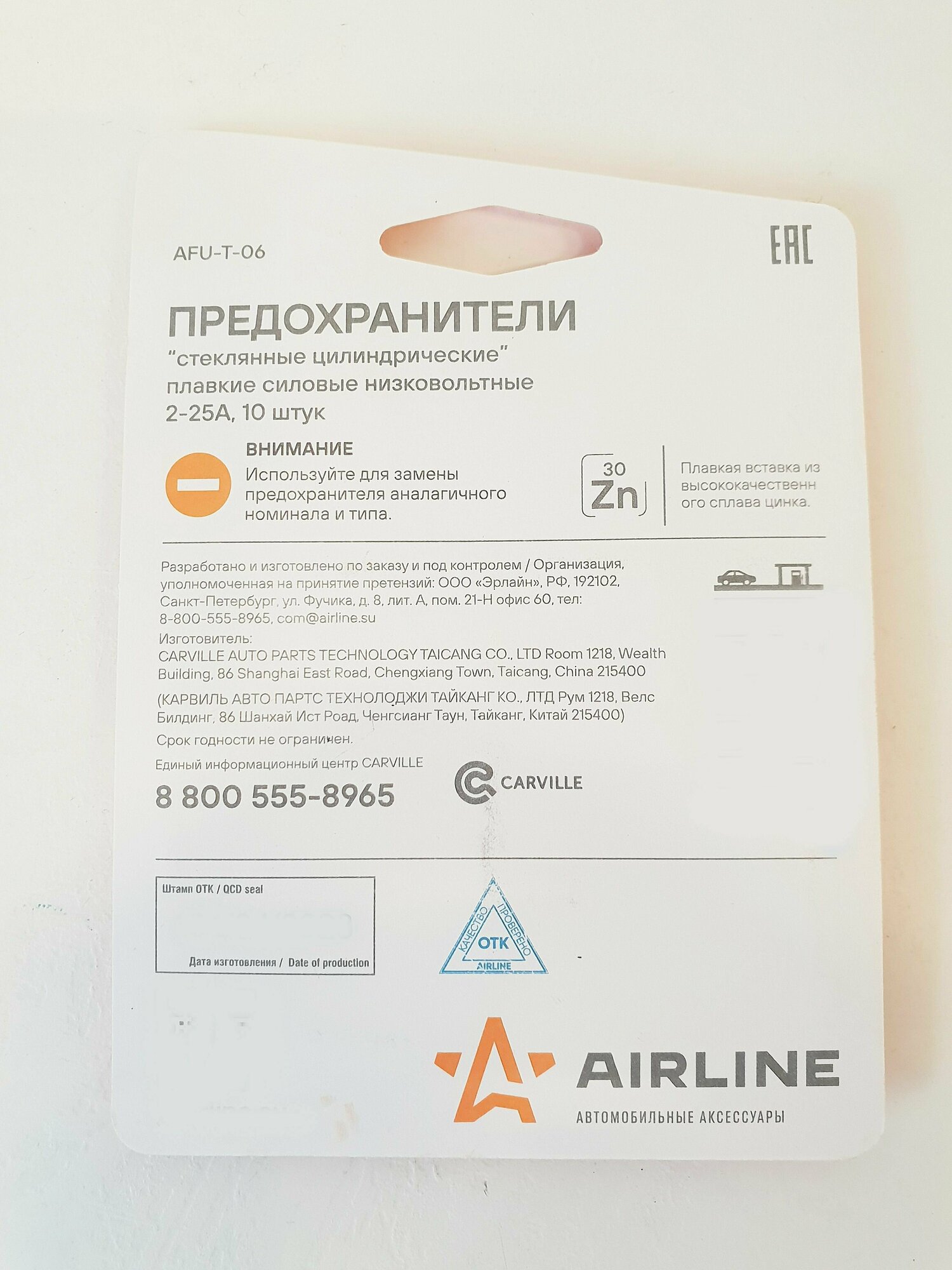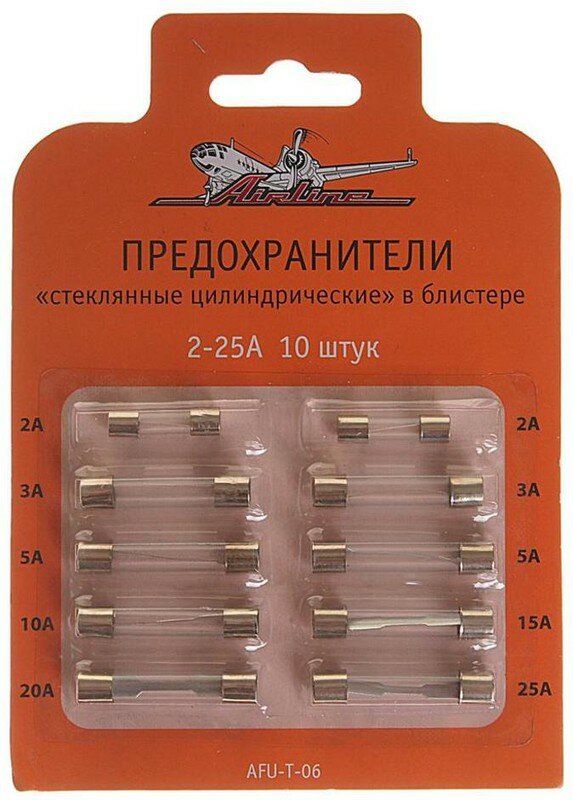 Предохранители набор цилиндр. 2-25А стеклян. в блистере /10 шт/ AIRLINE AFU-T-06 интересное: