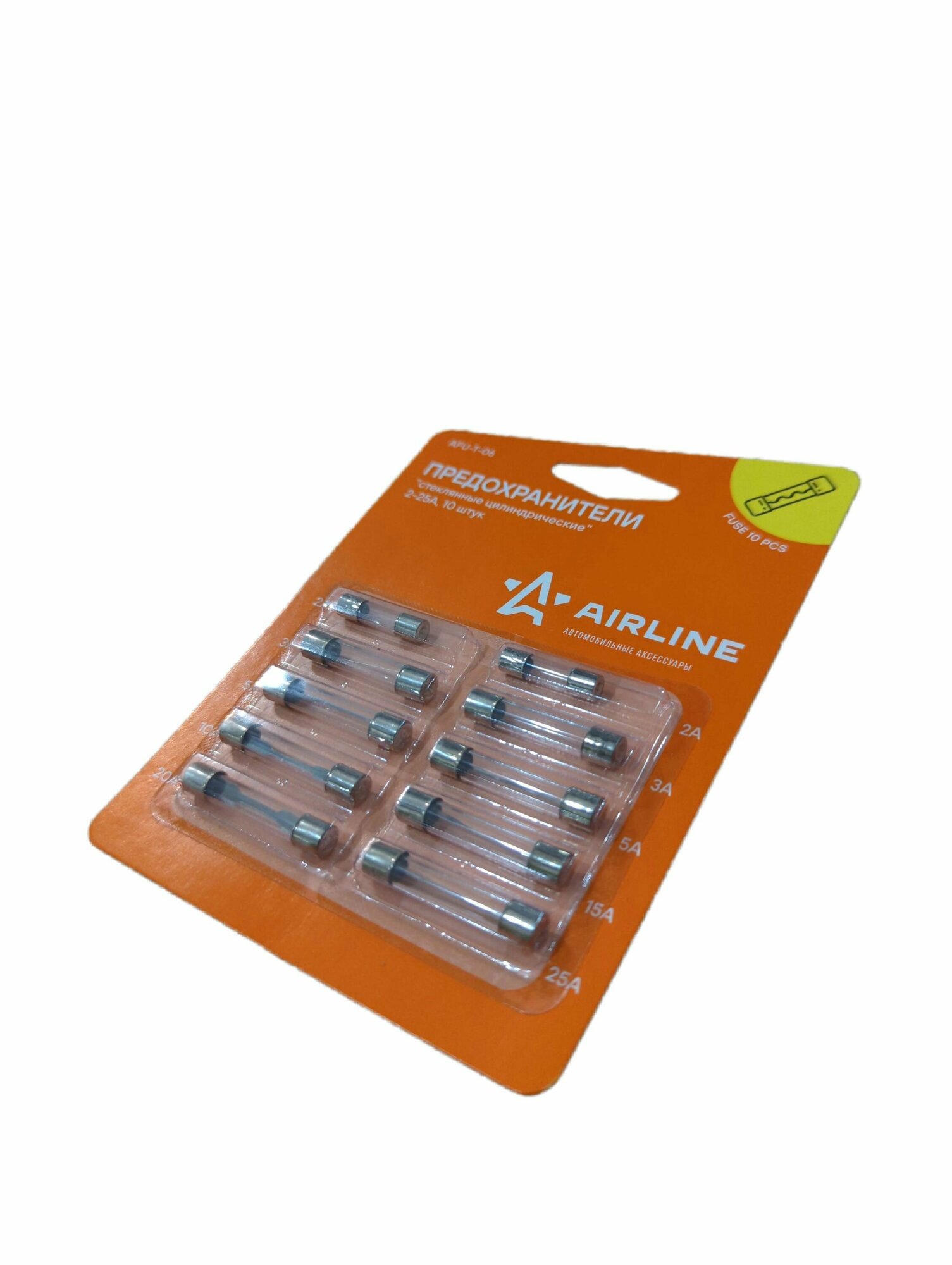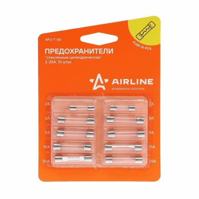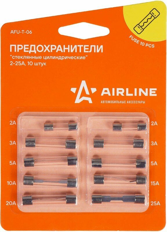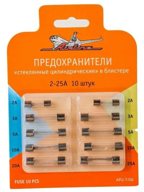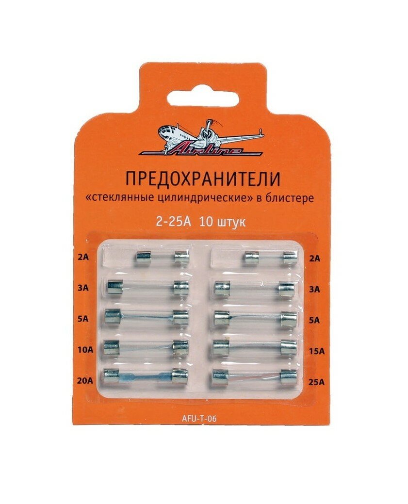 Предохранители "стеклянные цилиндрические" в блистере (10 шт. 2-25А) (AFU-T-06) AIRLINE