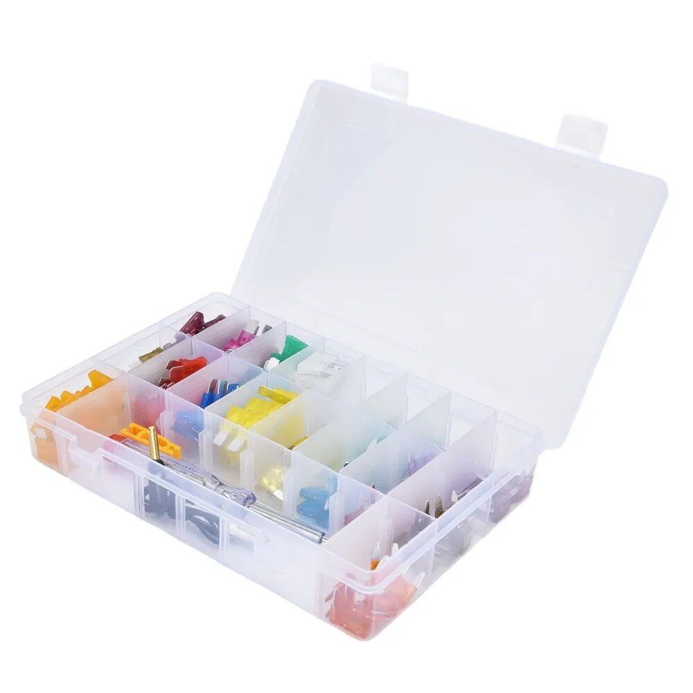 | Состав набора | 90 средних предохранителей 90 маленьких предохранителей 1 х тестер цепи 1 х кабель патрона 1 х съемник предохранителей 1 х ящик для хранения |