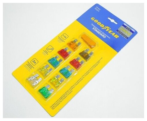 Купить Набор флажковых пластиковых предохранителей «стандарт» 10шт + экстрактор (5А,7.5А,10А,15А,2 GOODYEAR GY003052 | цена за 1 шт