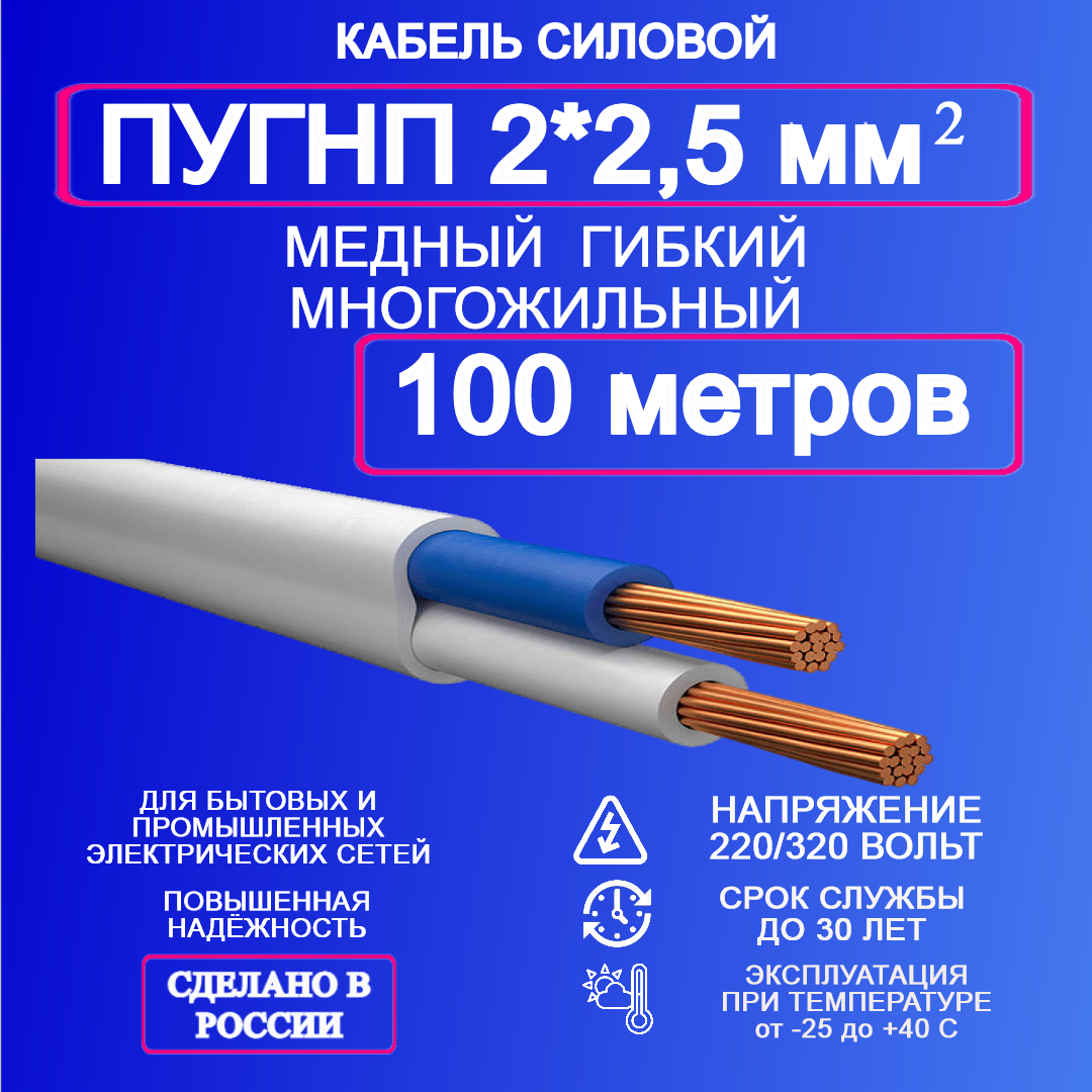 СохранитьСиловой кабель ПУГНП 2*2,5 100 метров интересное: