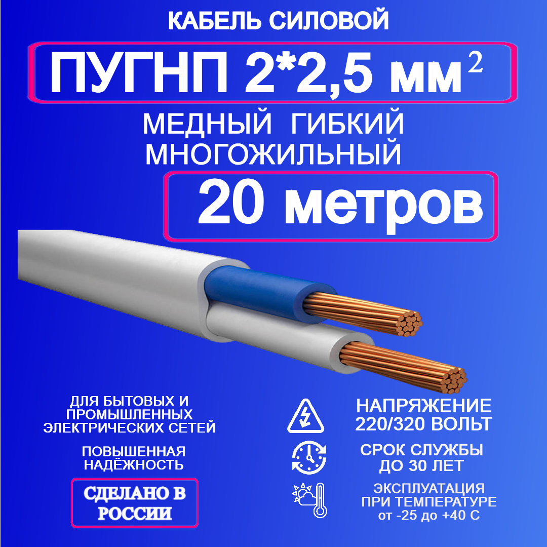 СохранитьСиловой кабель ПУГНП 2*2,5 20 метров интересное: