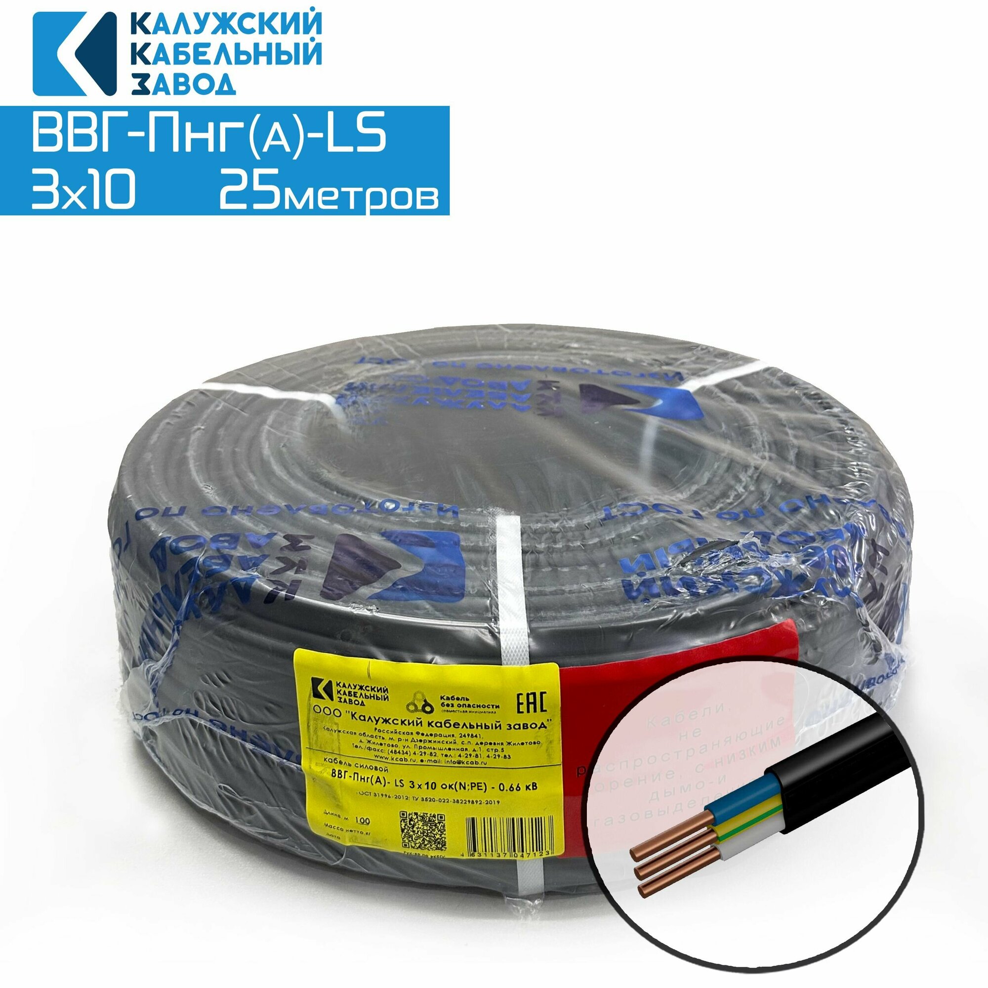 Кабель силовой ВВГ-Пнг(А)-LS 3х10 ГОСТ. 25 метров. Кaлyжcкий кабельный зaвoд