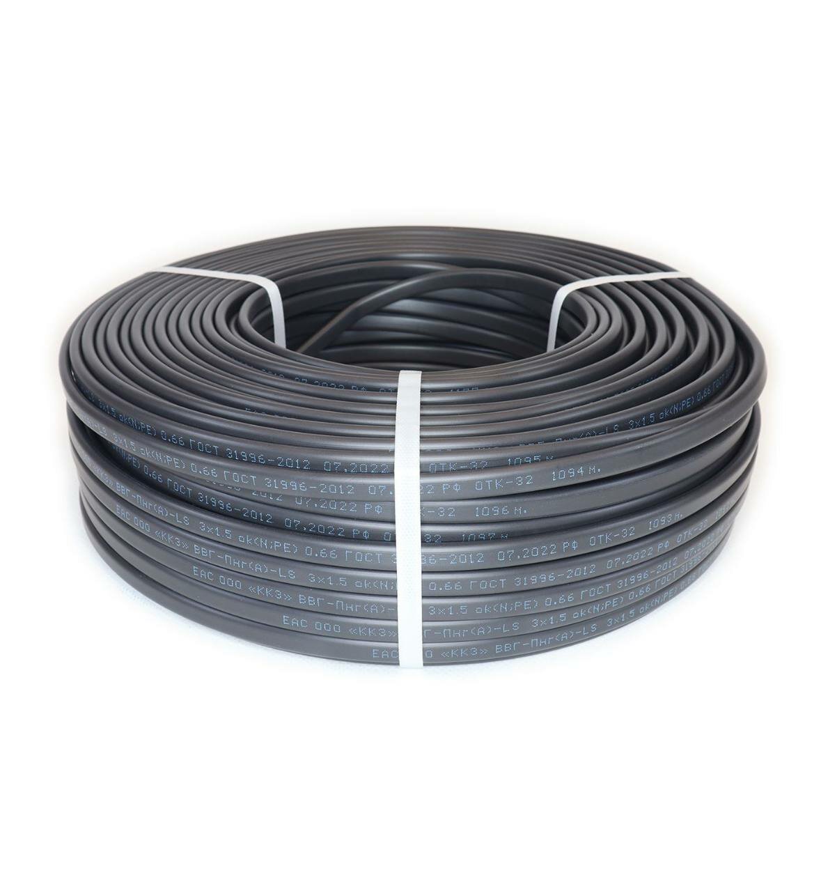 Кабель силовой ВВГ-Пнг(А)-LS 3х1.5 кв. мм калужский кабельный завод ГОСТ 15 метров