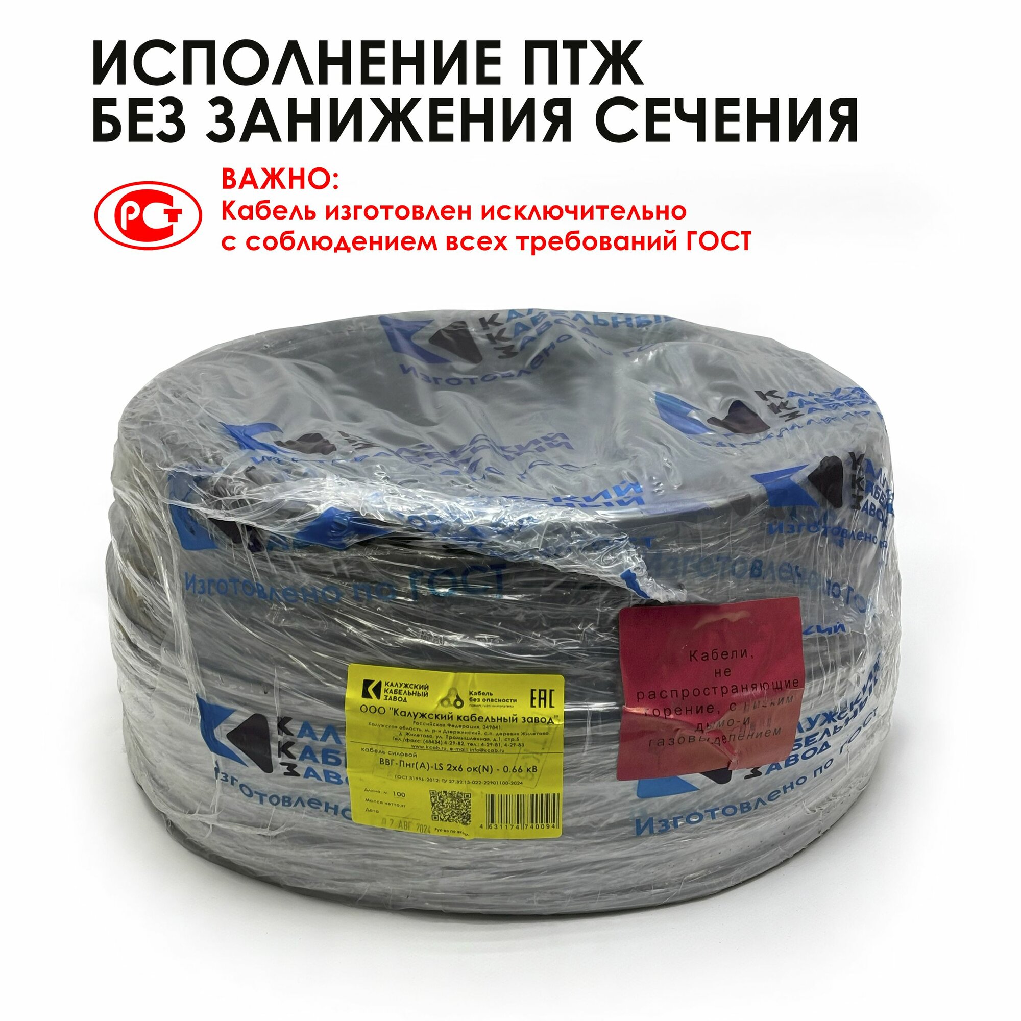 Кабель силовой ВВГ-Пнг(А)-LS 2х6,0 кв. мм калужский кабельный завод ГОСТ черный 15 м