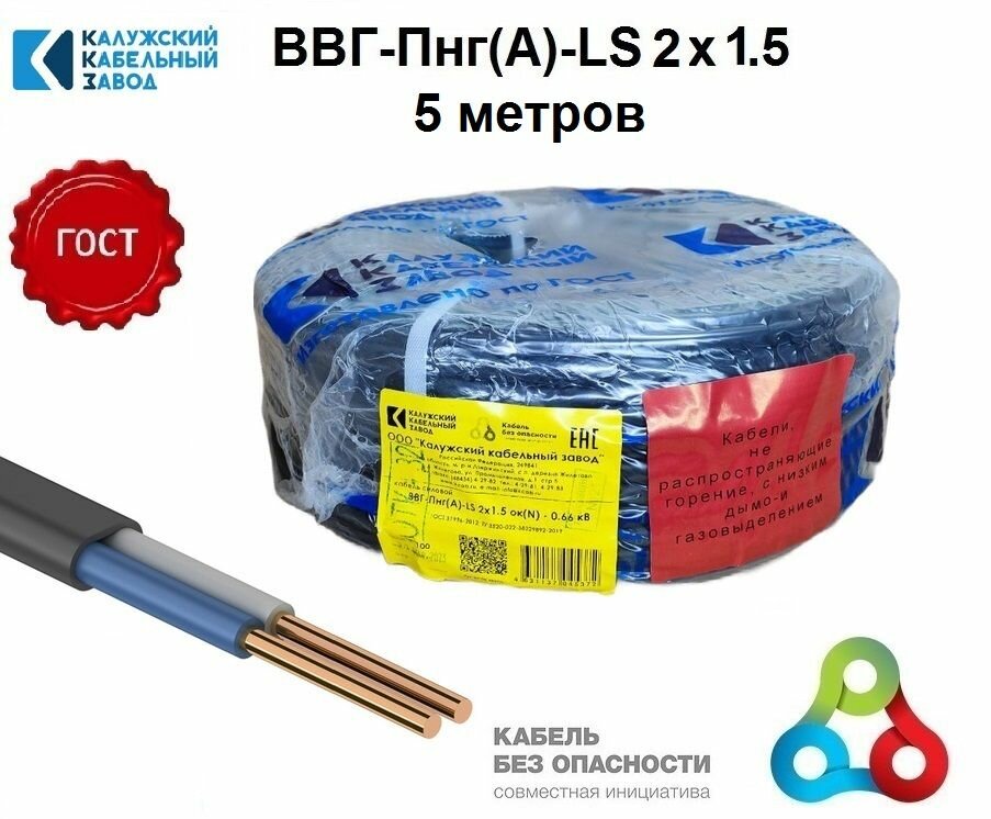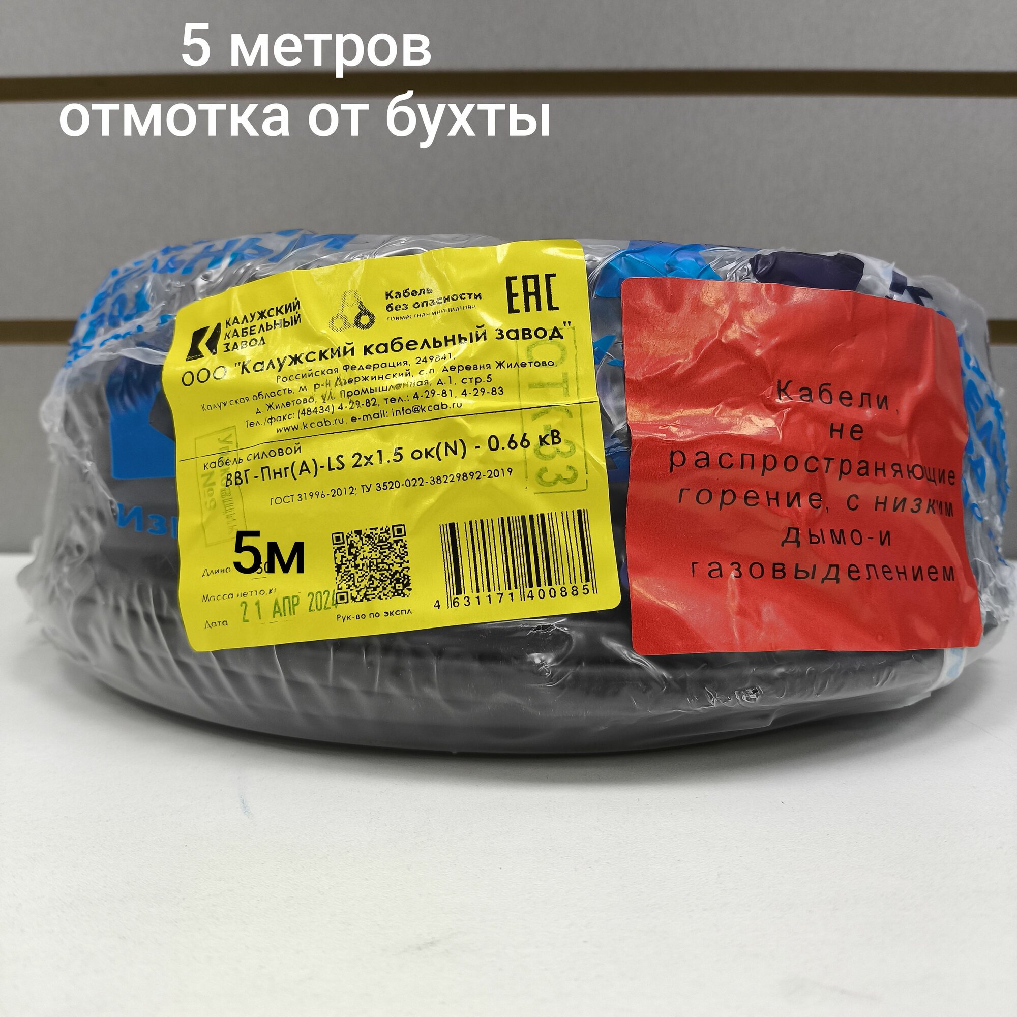 Силовой кабель ВВГ-Пнг(А)-LS 2х1.5 ГОСТ 5метров Калужский кабельный завод