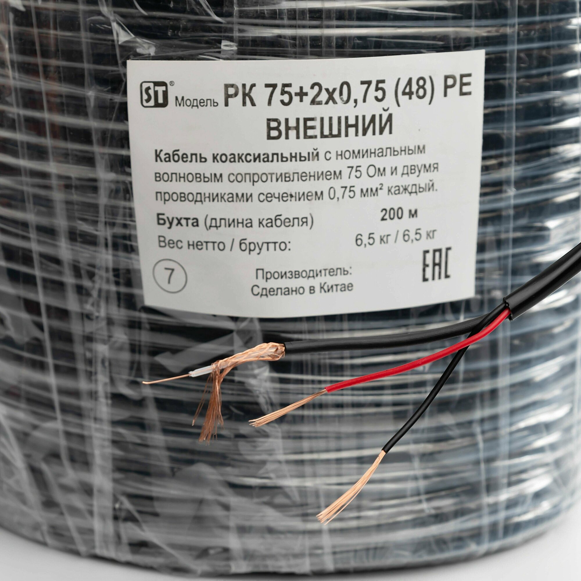 Купить Кабель комбинированный для видеонаблюдения и домофонии КВК-П 2Х0,75 (РК 75+2х0,75 (48) PE ST) черный для внешней прокладки (улица) (бухта 200м)