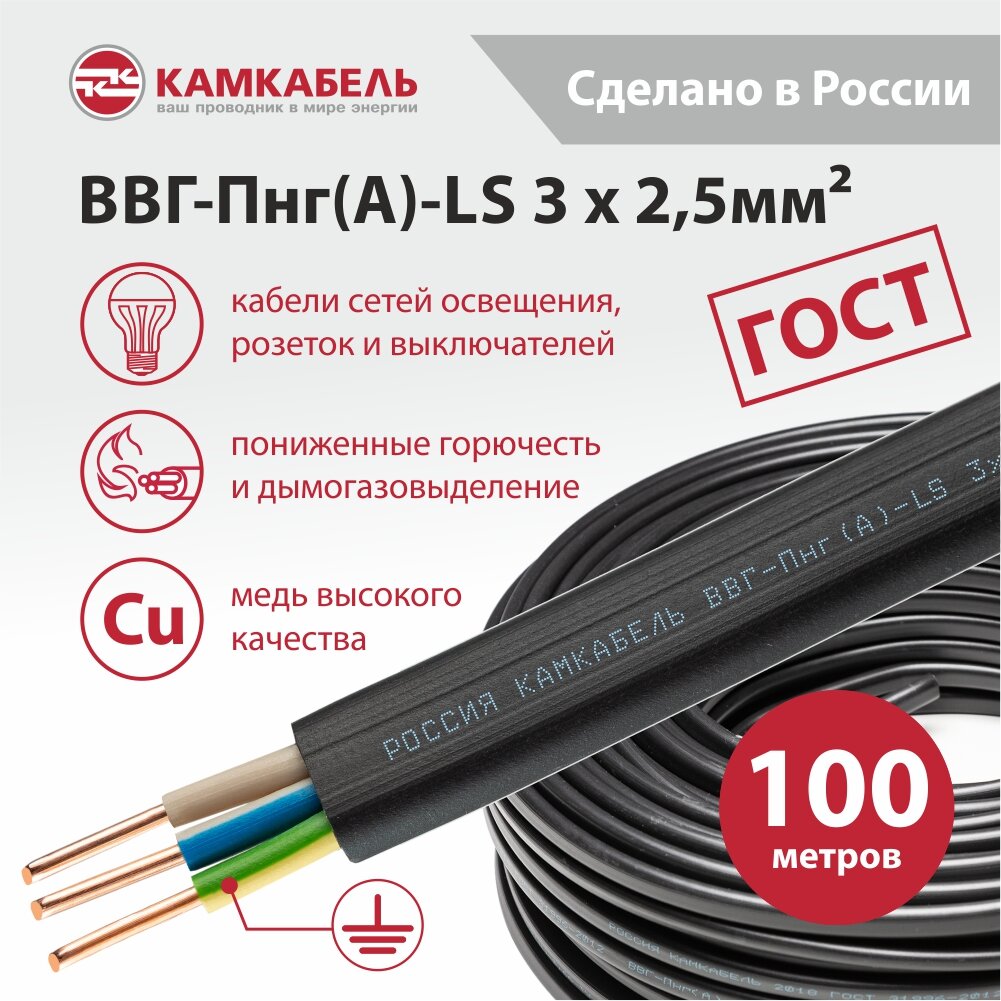 Кабель Камкабель ввгпнг(А)-LS 3х2,5 (100 м) интересное: