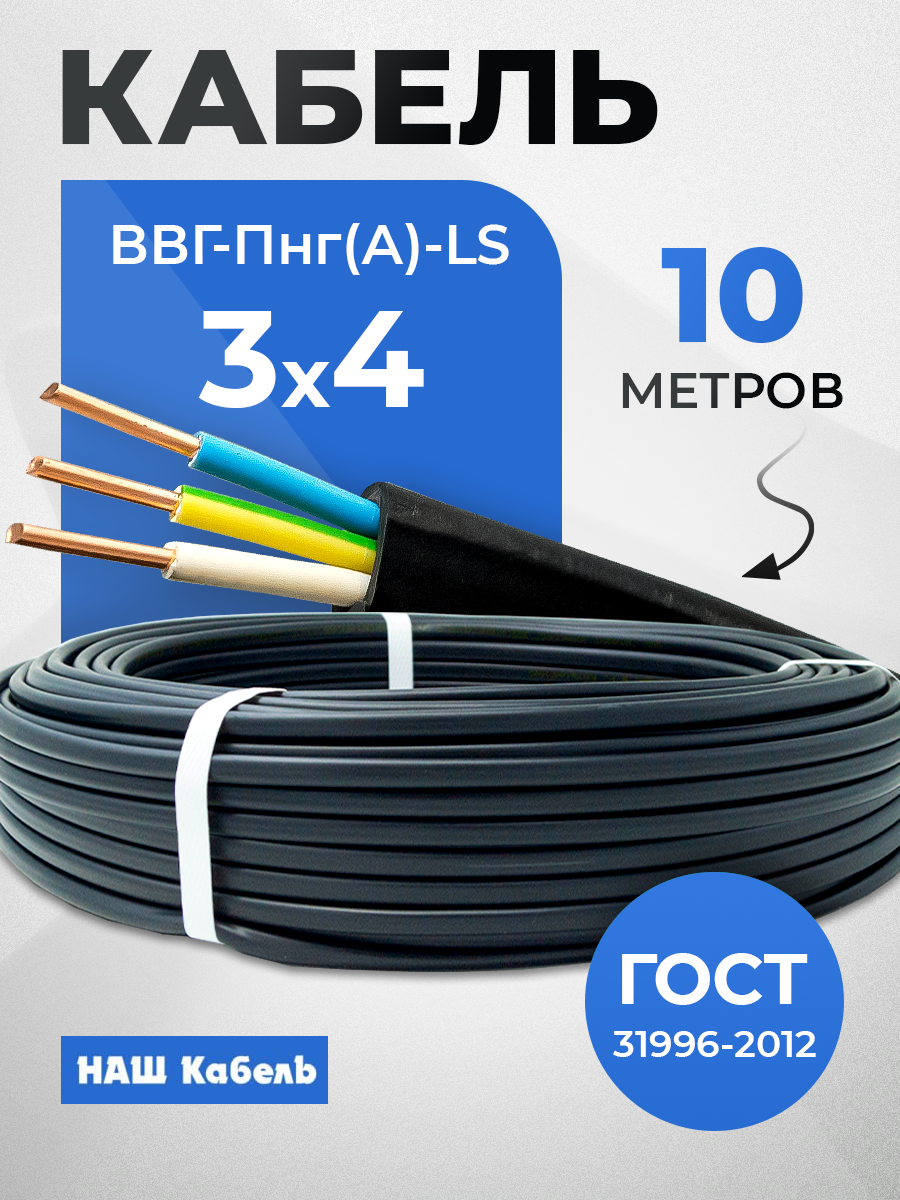 Ниже Вы можете прочитать отзывы на Кабель электрический трехжильный силовой медный ВВГ-Пнг(А)-LS ГОСТ 3*4,0мм2 бухта 10 метров "Наш кабель", ознакомится с подробными характеристиками, посмотреть интересные обзоры и фотографии на Кабель электрический трехжильный силовой медный ВВГ-Пнг(А)-LS ГОСТ 3*4,0мм2 бухта 10 метров "Наш кабель".