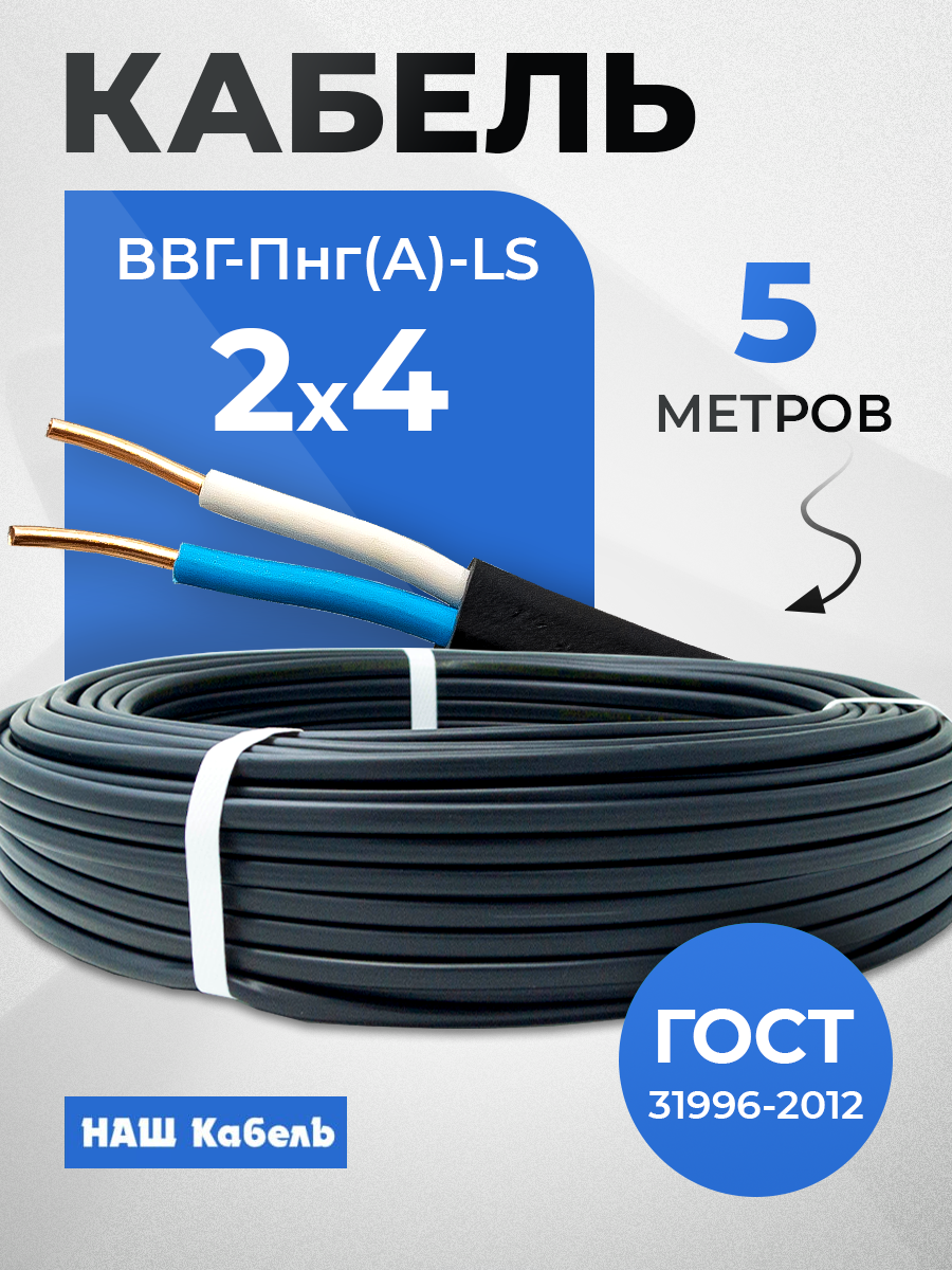Купить Кабель электрический (5м) двухжильный силовой медный ВВГ-Пнг(А)-LS ГОСТ 2*4,0мм2 бухта "Наш кабель"