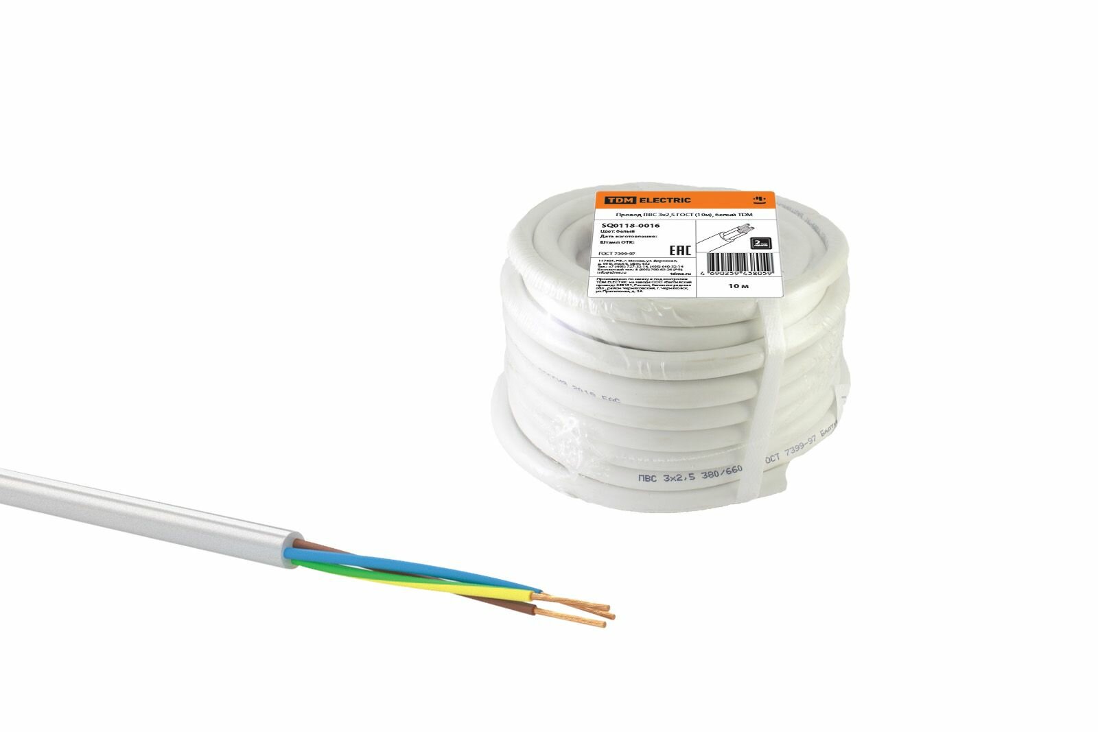 Провод ПВС 3х2,5 ГОСТ (10м), белый TDM