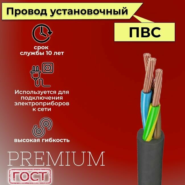Провод/кабель гибкий электрический ПВС Premium 3х4 ГОСТ 7399-97, 5 м