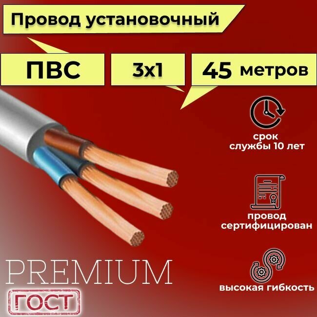 Провод/кабель гибкий электрический ПВС Premium 3х1,5 ГОСТ - 45 м