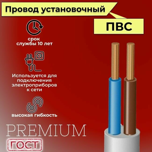 Провод/кабель гибкий электрический ПВС Premium 2х1,5 ГОСТ 7399-97, 10 м