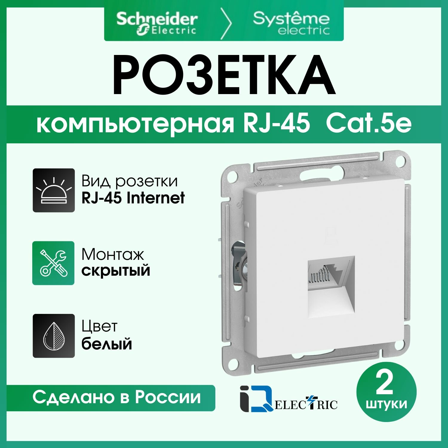 Розетка компьютерная Schneider Electric Atlas Design ATN000183 скрытая установка белая один модуль RJ45 (2 шт.)
