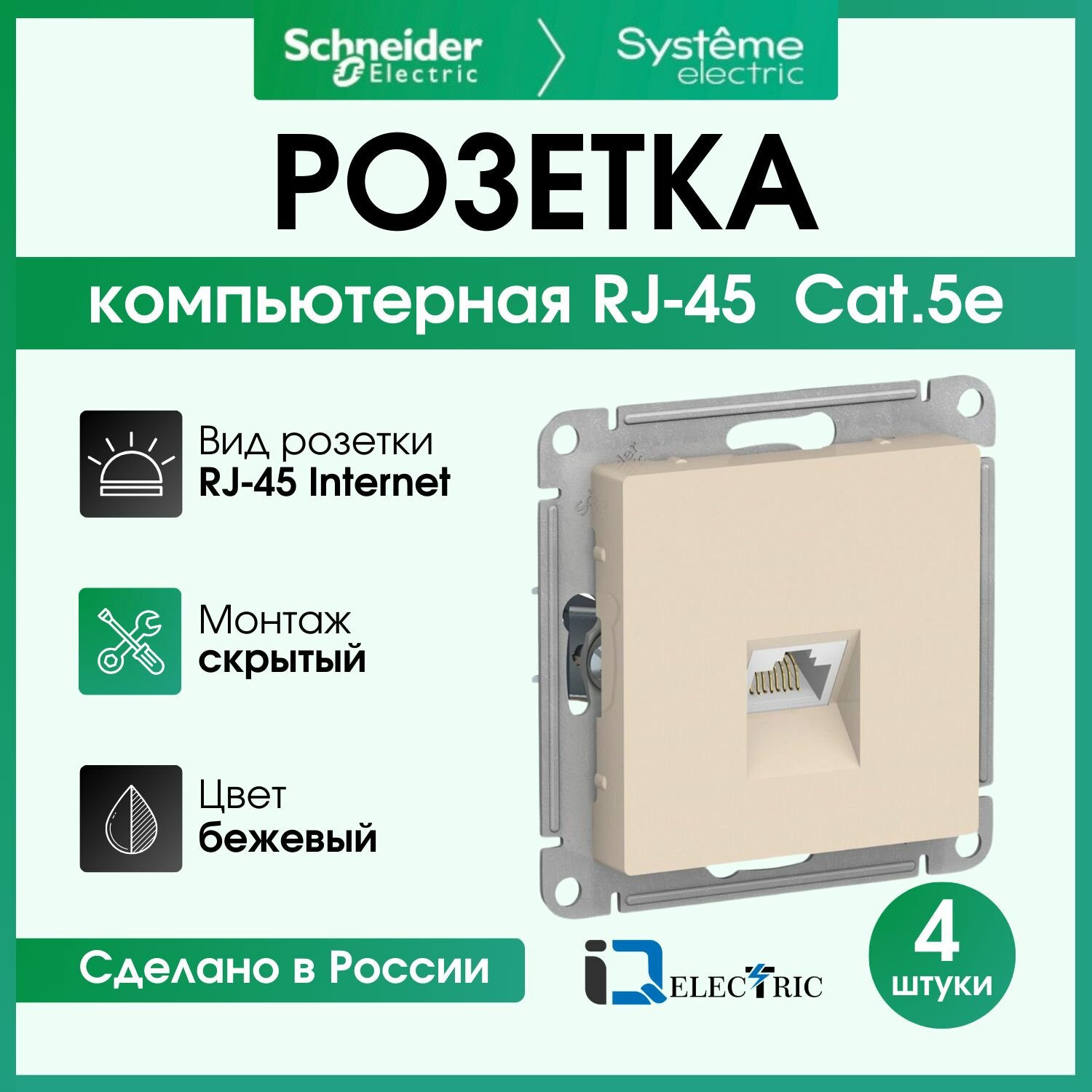 Купить Розетка RJ-45 кат. 5е, бежевая 4 шт Schneider Electric Atlas Design ATN000283