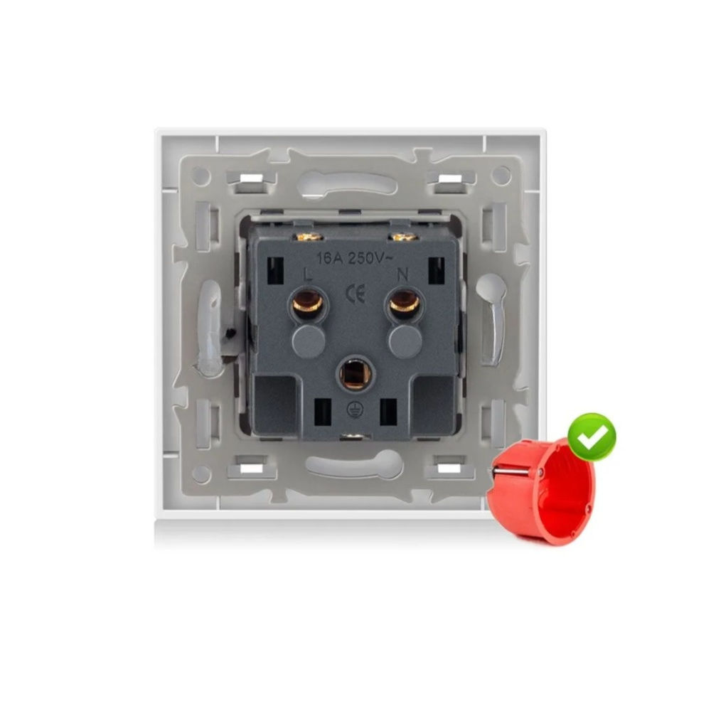 Розетка одинарная 220в 16А рамка из закаленного стекла, Белый