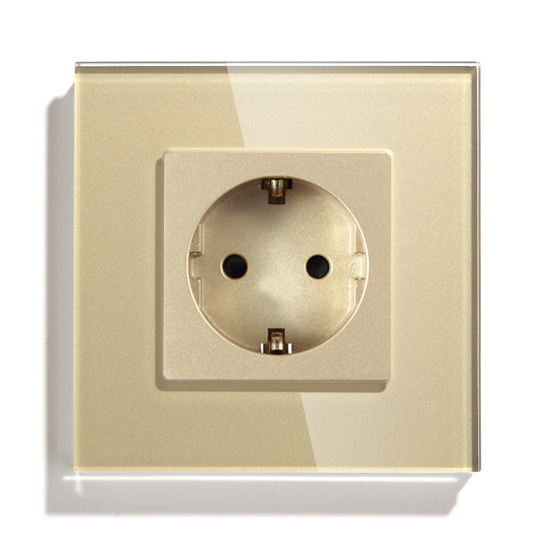 Купить Розетка электрическая 1 пост 16А, рамка 86х86 мм стекло, цвет золотой