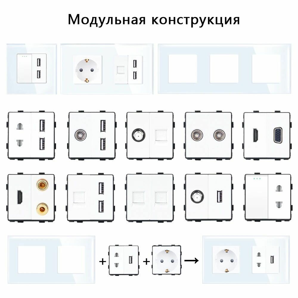 Розетка электрическая 2 поста 16А, рамка 157х86 мм стекло, цвет белый