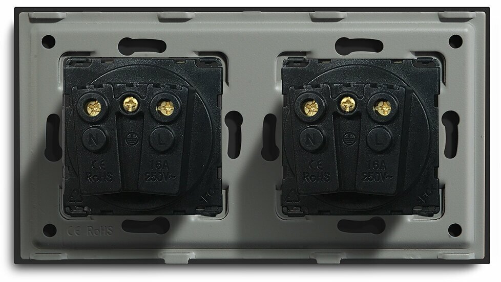 Розетка электрическая 2 поста 16А, рамка 157х86 мм стекло, цвет черный