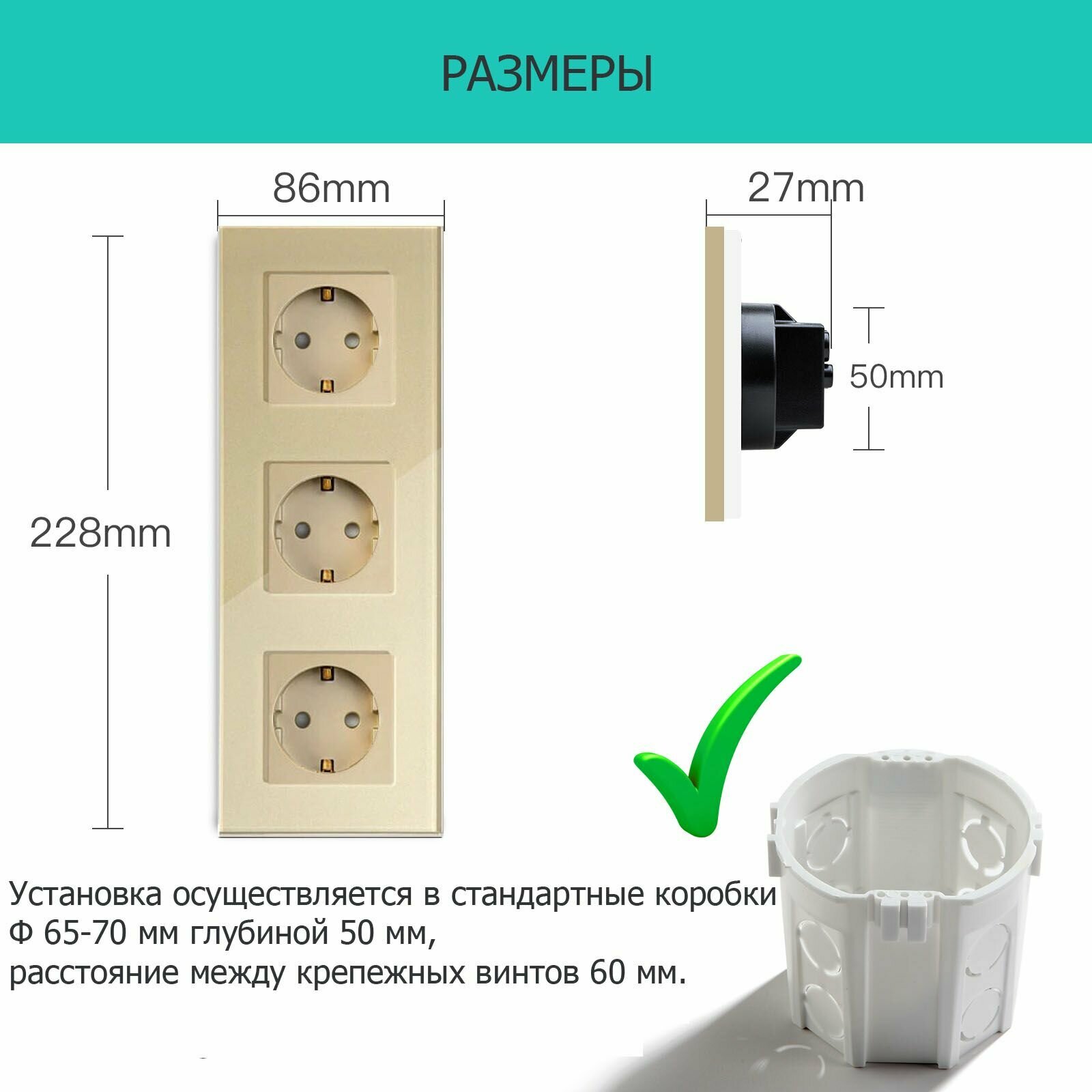 Ниже Вы можете прочитать отзывы на Розетка электрическая 3 поста 16А, рамка 228х86мм стекло, цвет золотой, ознакомится с подробными характеристиками, посмотреть интересные обзоры и фотографии на Розетка электрическая 3 поста 16А, рамка 228х86мм стекло, цвет золотой.