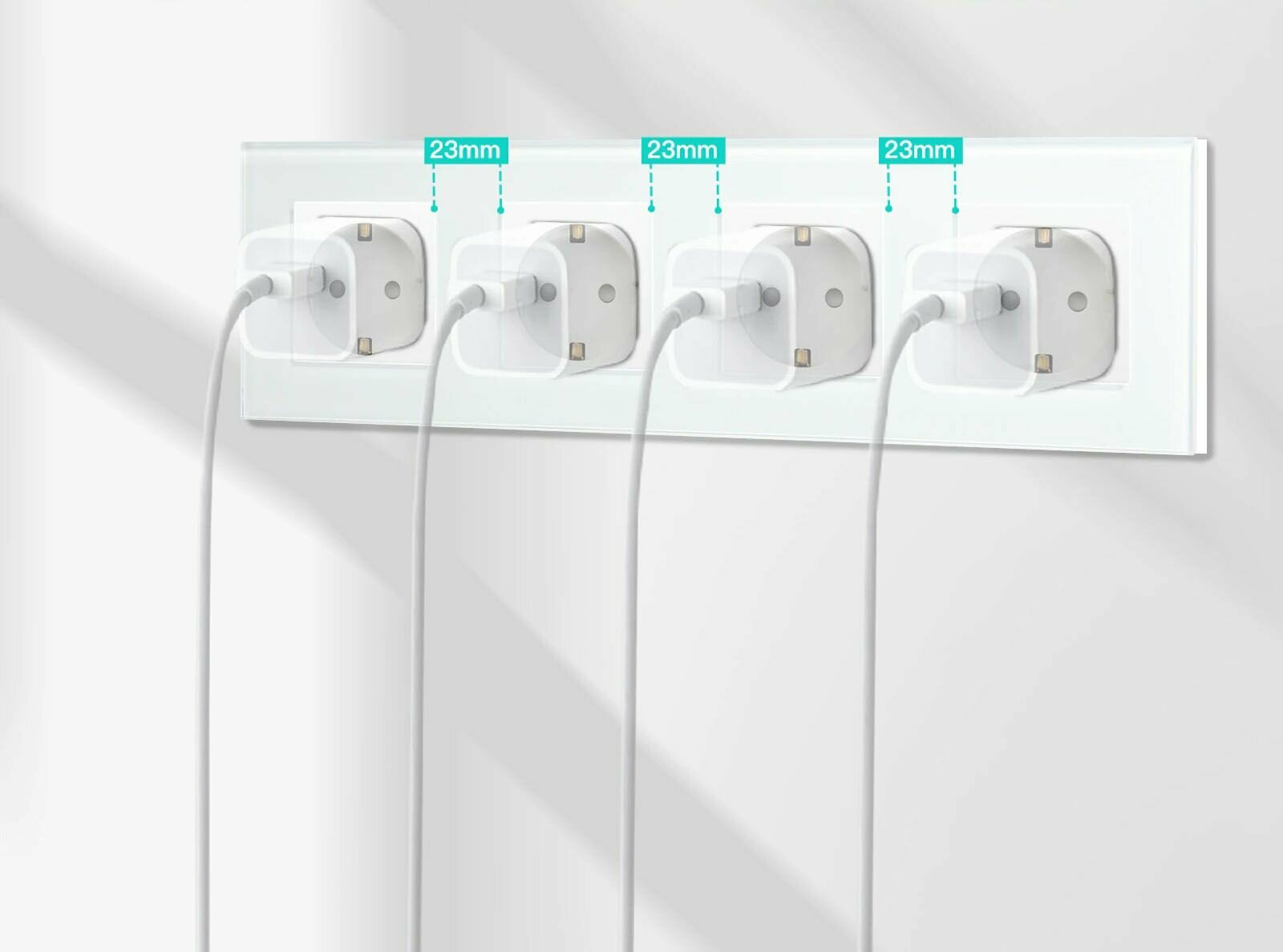 Купить Розетка электрическая 4 поста 16А, рамка 299х86мм стекло, цвет белый