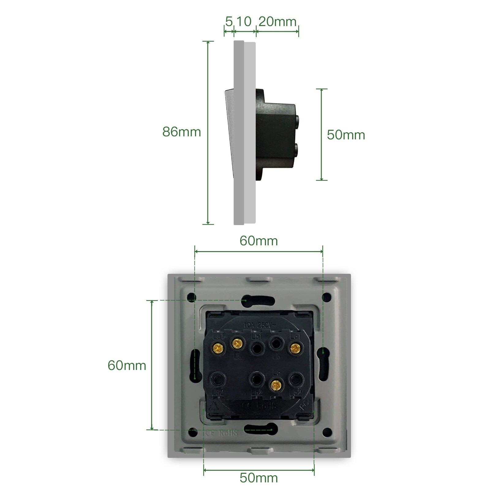 Купить Выключатель механический, 2 клавиши, 1 пост, рамка стекло 86х86мм , цвет серый