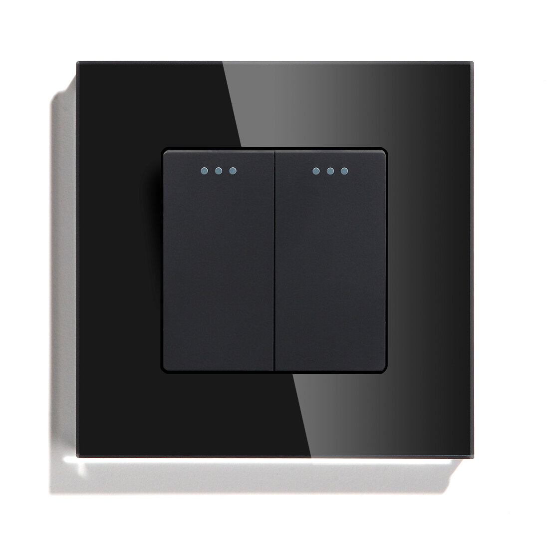 Купить Выключатель механический, 2 клавиши, 1 пост, рамка стекло 86х86мм , цвет черный