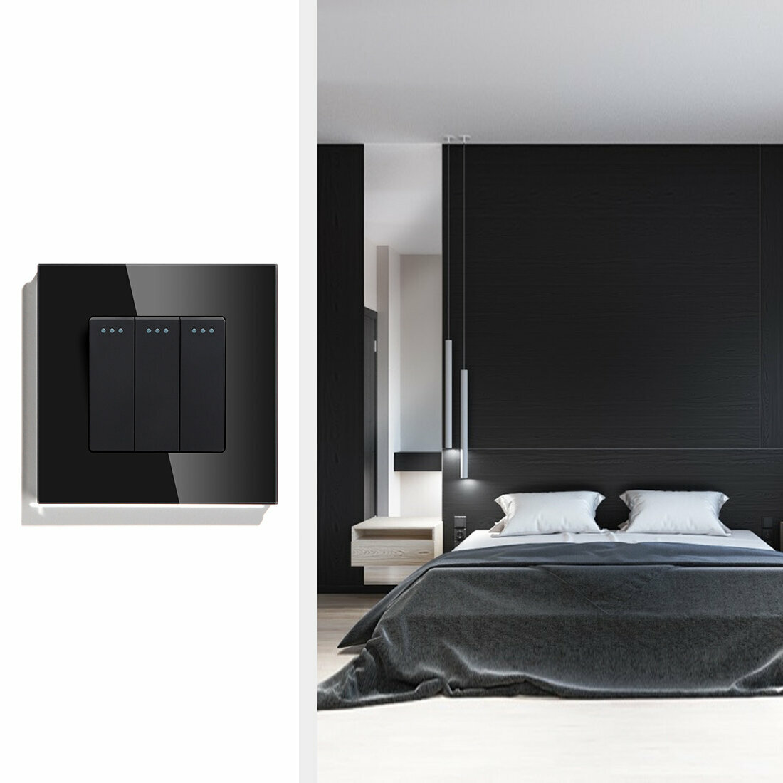 Выключатель механический, 3 клавиши, 1 пост, рамка стекло 86х86мм цвет черный