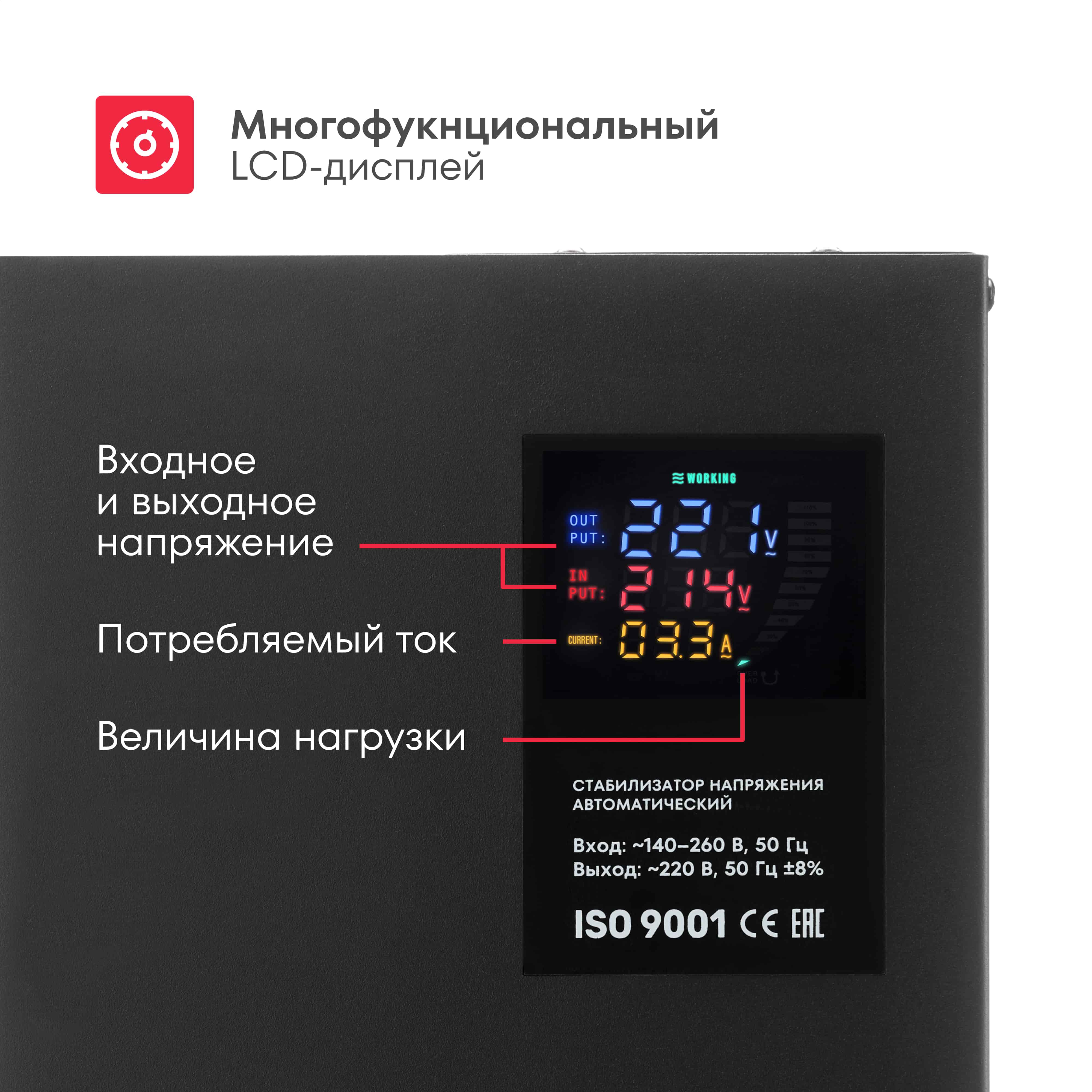 | Дополнительная информация | задержка запуска 6 - 180 сек, евро-розетка + клеммы, автоматический вентилятор охлаждения, диэлектрические ножки, напольная и настенная установка, быстросъемное крепление на стену, цветная индикация, отображение силы тока |