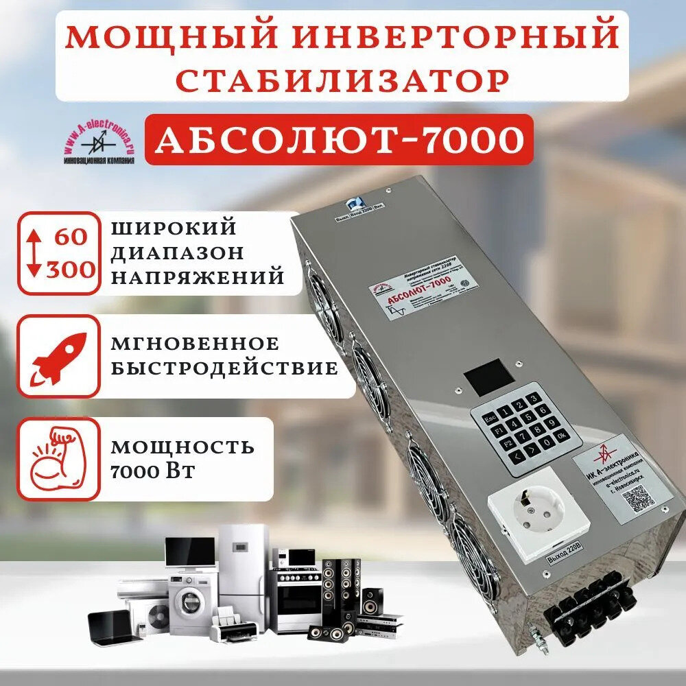 Стабилизатор, 7кВт, АБСОЛЮТ-7000, инверторный. Диапазон входного напряжения от 60 до 300В интересное: