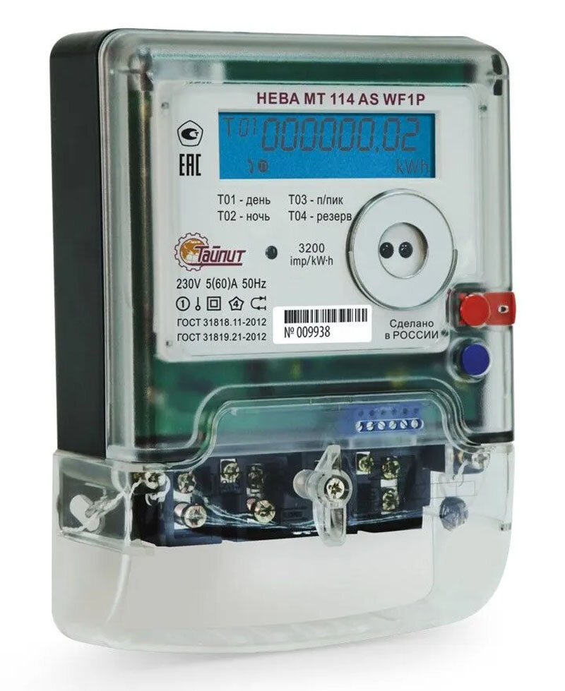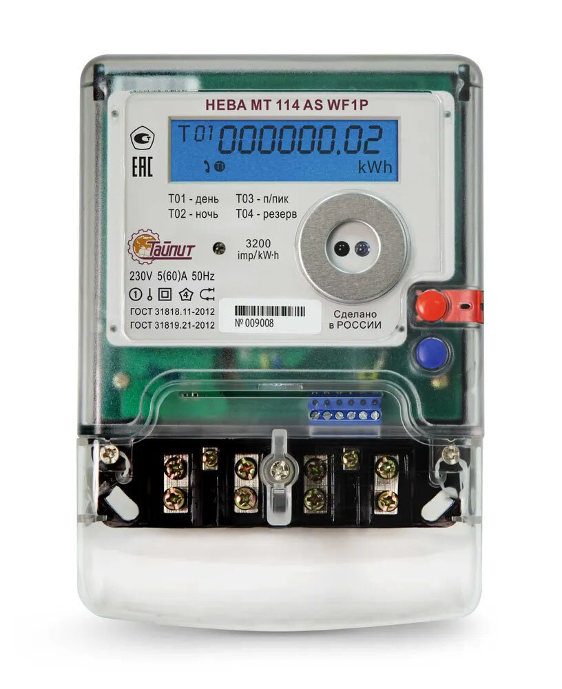 Счётчик электроэнергии 1Ф нева МТ 114 AS WF1P 5(60)A 78 регион интересное:
