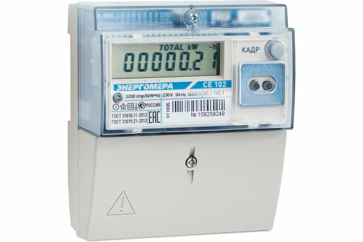 Счетчик электроэнергии Энергомера CE102 R5.1 145-JAN, 230В, 5-60А 101002003012776 интересное: