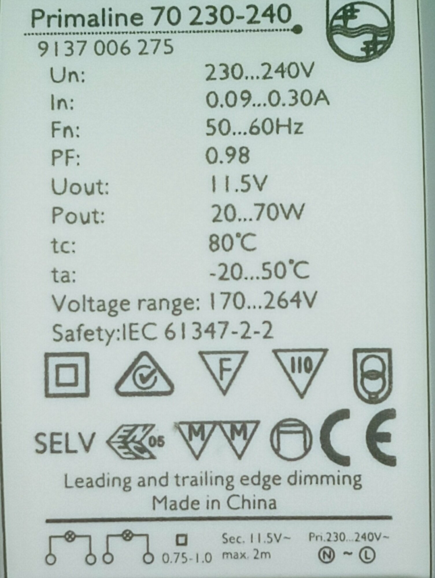 Трансформатор Philips Рrimаlinе 70 230-240 электронный 220В/12В 20-70Вт c защитой от перегрузок и короткого замыкания интересное: