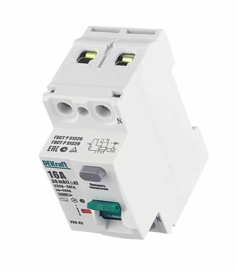 | Дополнительная информация | Устройство защитного отключения DEKraft 2P 25А 30мА тип AC 6кА |