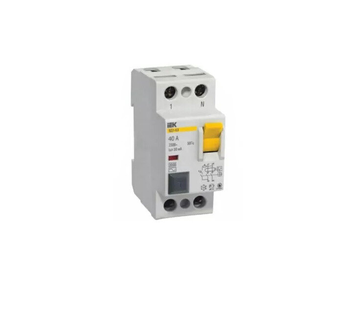 Купить УЗО выключатель дифференциальный 40А ВД1-63 тип АС 30мА 2П IEK