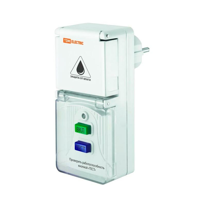 Устройство защитного отключения (УЗО) Tdm Electric УЗО-Р-IP44-16-30 (в розетку с защ. крышк.) 16А 30мА IP44 (SQ1512-0003)