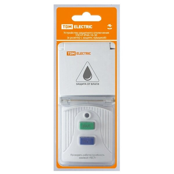Устройство защитного отключения TDM УЗО-Р-IP44-16-30 в розетку, с защитной крышкой, 16А, 30мА, IP44 SQ1512-0003