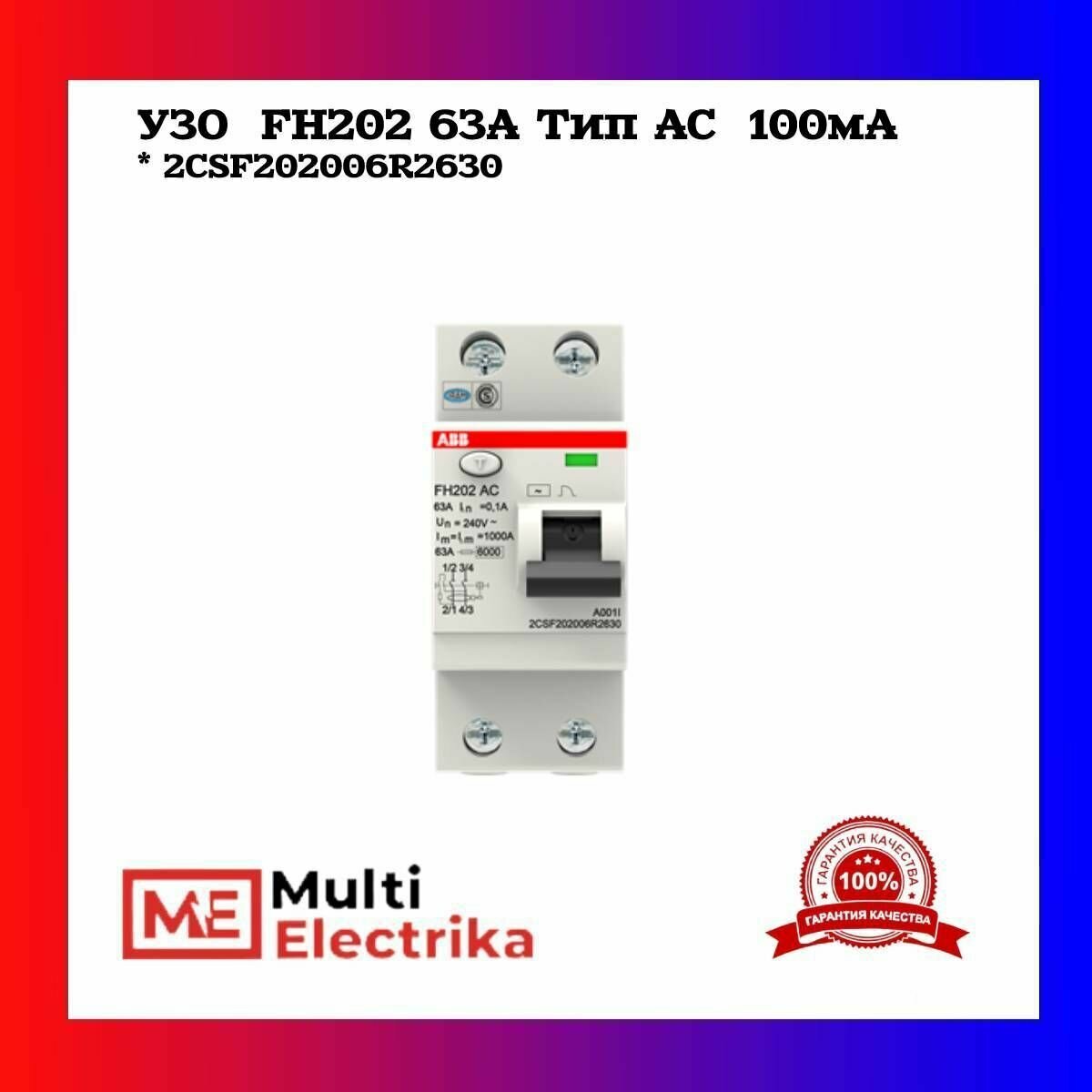 Устройство защитного отключения (УЗО) ABB FH202 AC-63A/100mA 2CSF202006R2630
