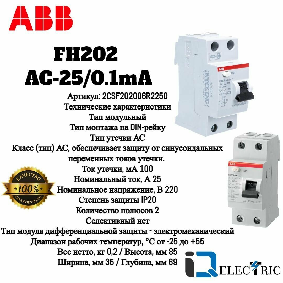 ABB FH202AC 25/0.1 узо 2Р 25а 100mA (AC)