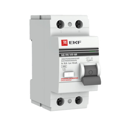 Устройство защитного отключения ВД-100 2P 63А 100мА (тип АС, электромеханическое) 6кА EKF PROxima