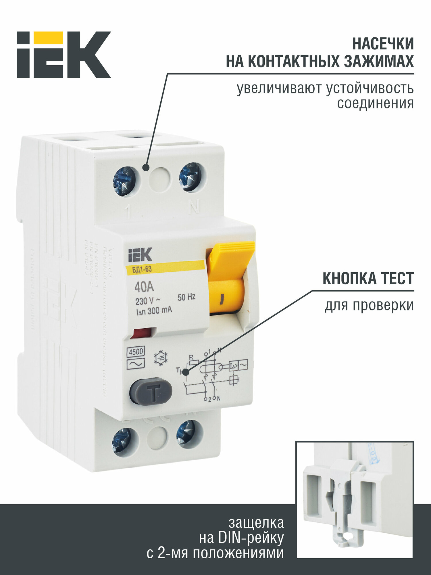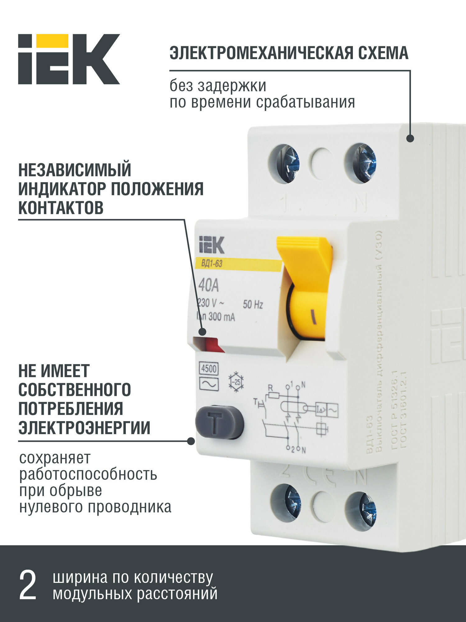 Выключатель дифференциального тока (УЗО) 2п 40А 300мА тип AC ВД1-63 IEK MDV10-2-040-300 интересное: