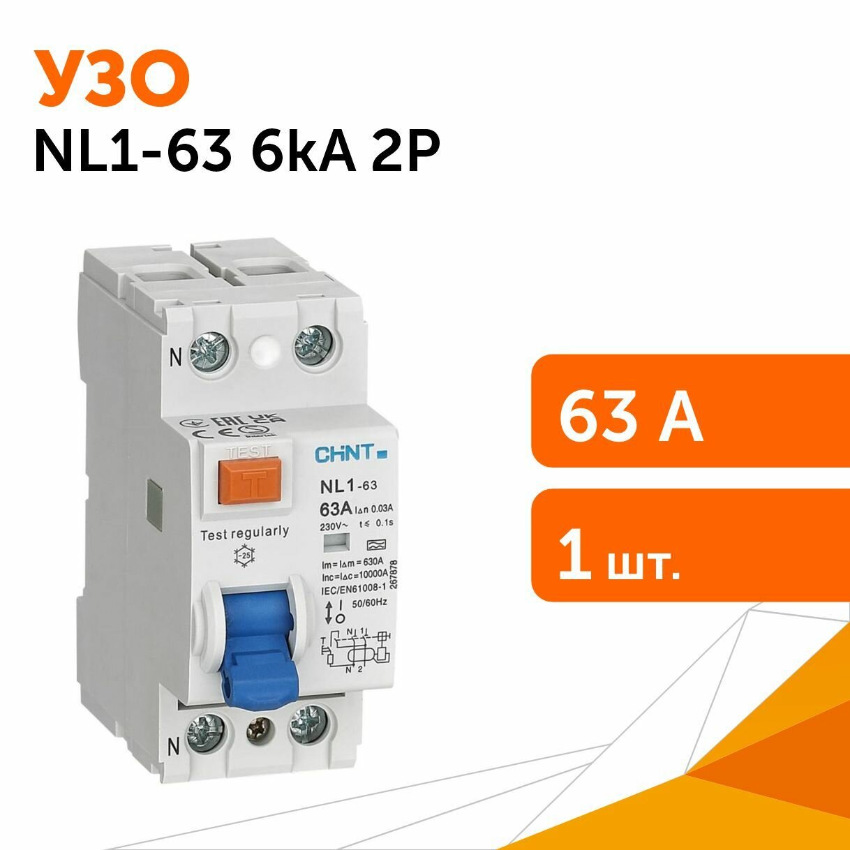 CHINT УЗО NL1-63 2P 63A 30mA 6kA тип AC (DB) (R)