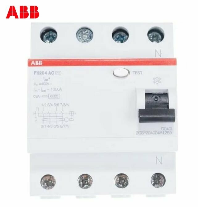 ABB FH204AC УЗО Устройство защитного отключения 4P 63A 300mA (AC)